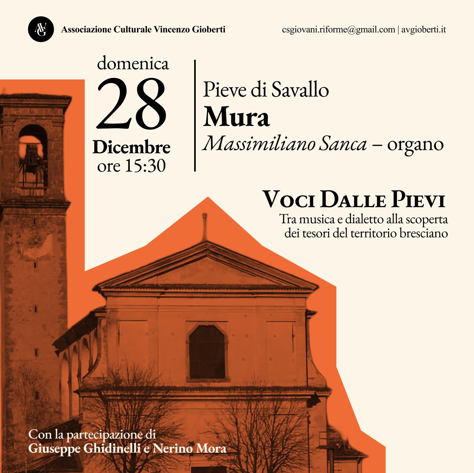 Nuovo evento sul nostro territorio presso la chiesa di Pieve di Savallo, Mura. L'evento programmato Domenica 28 Dicembre 2025 alle ore 15:30 racconterà con la musica e dialetto la scoperta dei tesori del territorio bresciano.